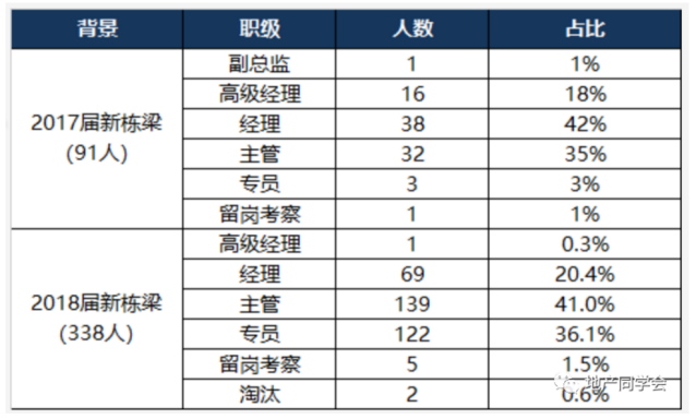 从中梁内部数据看,其2017、2018届管培生中,很多人在一两年内晋升为高级经理或经理,还有2年升为副总监的。